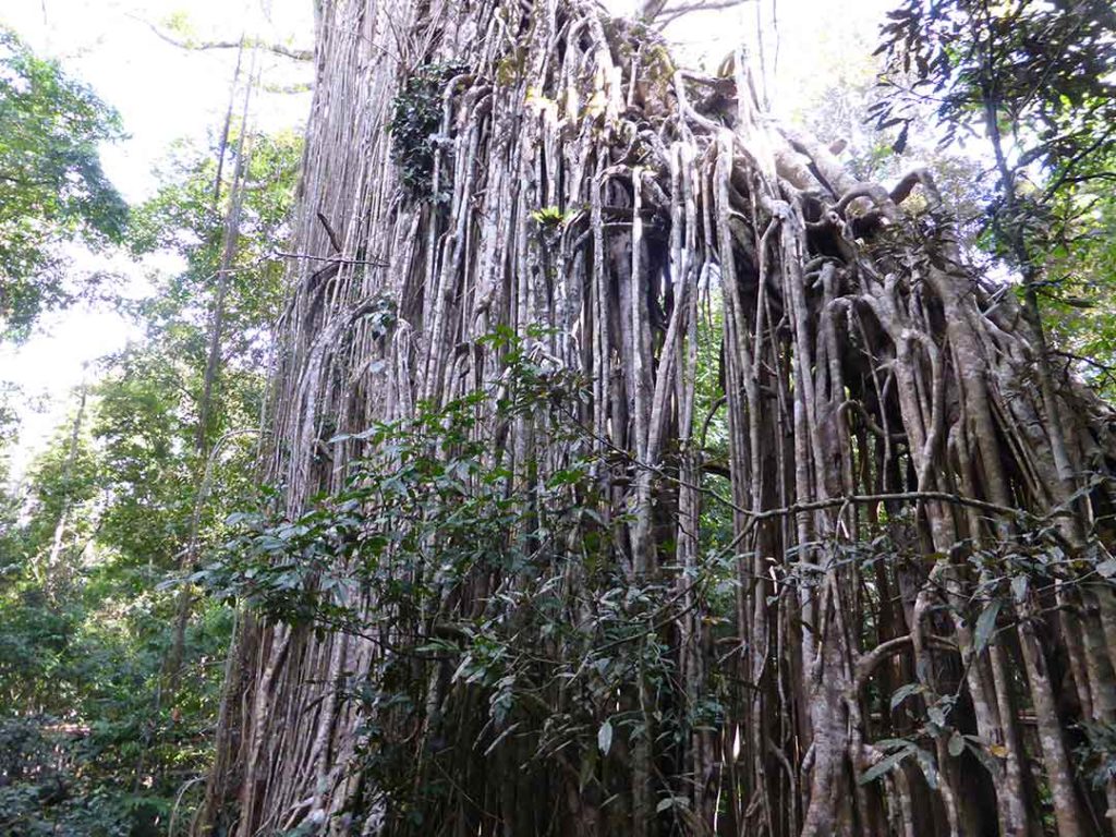 “The curtain effect results from one tree leaning against another tree on a 45-degree angle. The strangler vine then grew along the oblique angle of the leaning tree, dangling 15 metres to the ground to create the curtain affect” Cairns Attractions