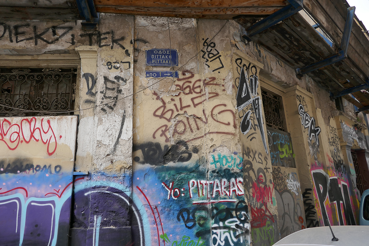 Athens is graffiti ridden, and this is by no means an attempt at street art. In my humble opinion, this grunge factor makes Athens very appealing. It is one of those cities that resonated with me. Eirini showed us where she and her friends went out to drink, and one of her favorite streets, Pittaris.