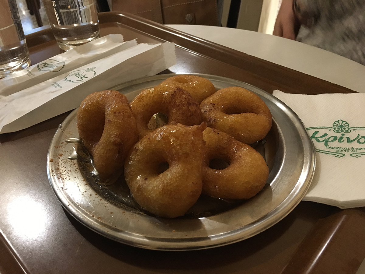 We headed to the famous café of Kpivos, where a plate laden with Loukoumades waited for us. Again, while we ate we talked about living in Athens.